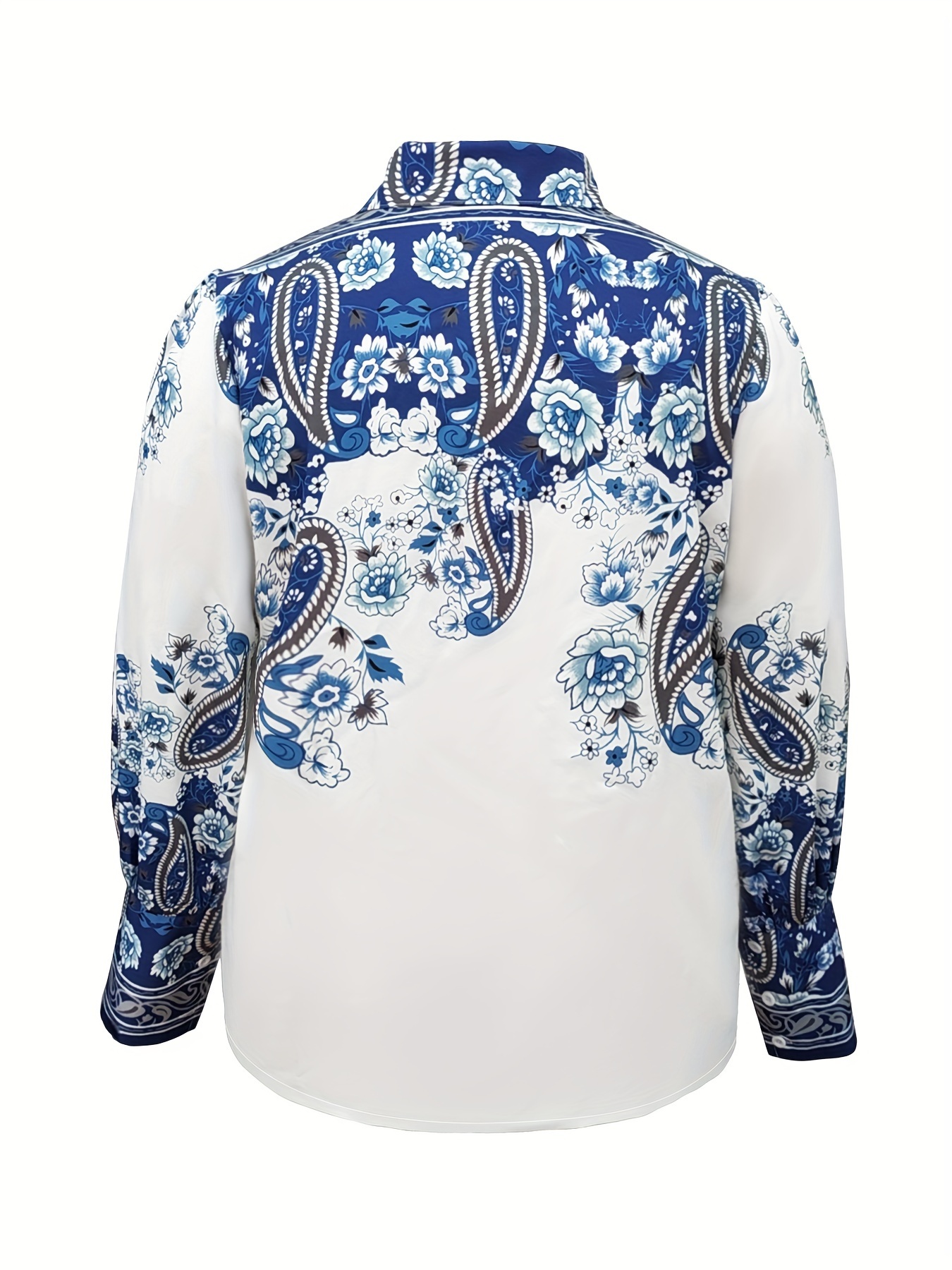 Plus Size Floral Print Blouse - Casual Lapel Long Sleeve Shirt - Polyester & Spandex Blend with Slight Stretch, Button Detail, Regular Length - Oversized Style for Going Out, All Seasons, Woven H-Fit - Middle East Collection